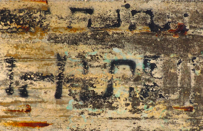 Negros, óxidos y grises cromáticos de tono cálido. JB, 2024. Óxido y esmalte sobre hormigón. 48 x 64 cms. Muelle don Luis de Castro Urdiales.