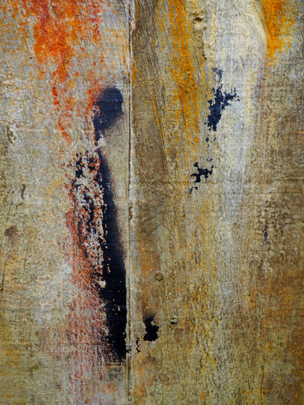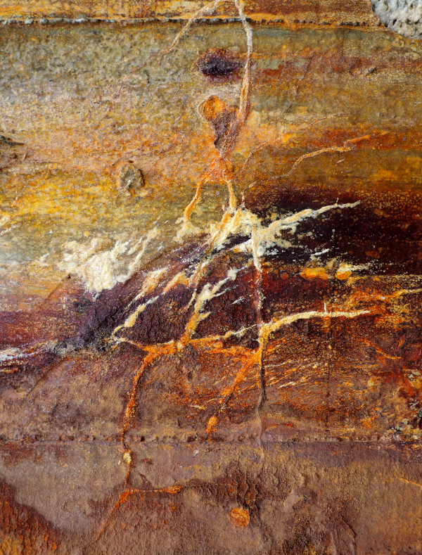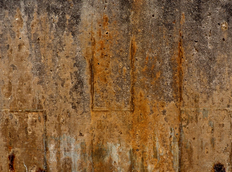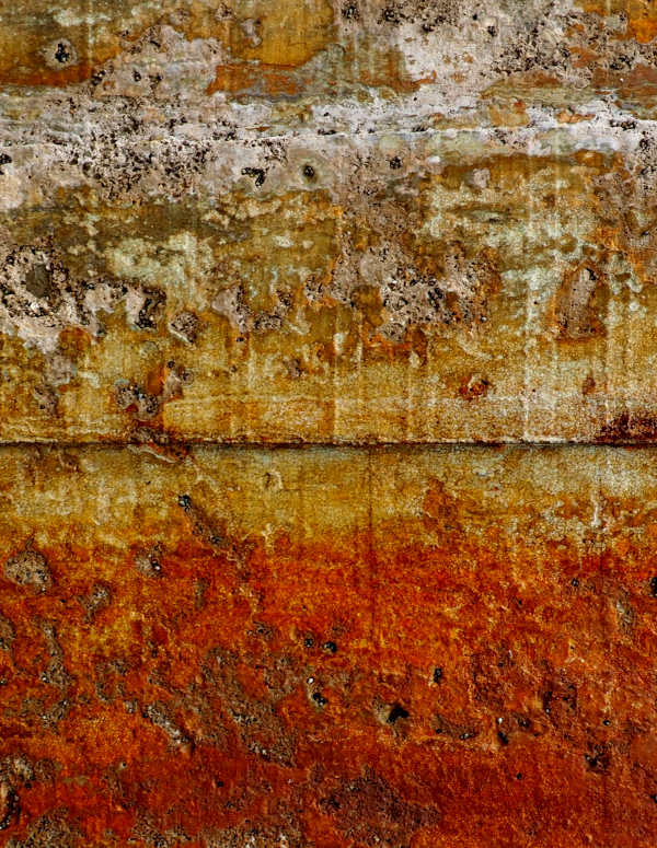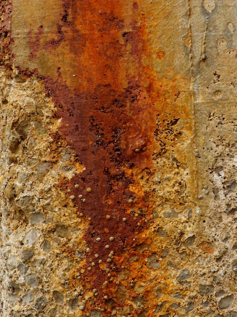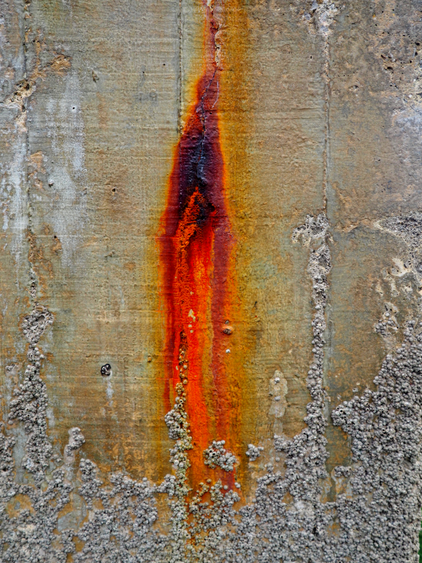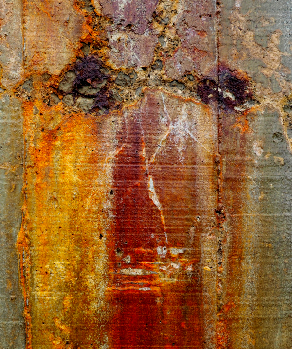 Fisiología celular para acercarse a la teoría del color . JB, 2024. Óxido y efluorescencias sobre hormigón. 45 x 60 cms. Muelle don Luis de Castro Urdiales.
