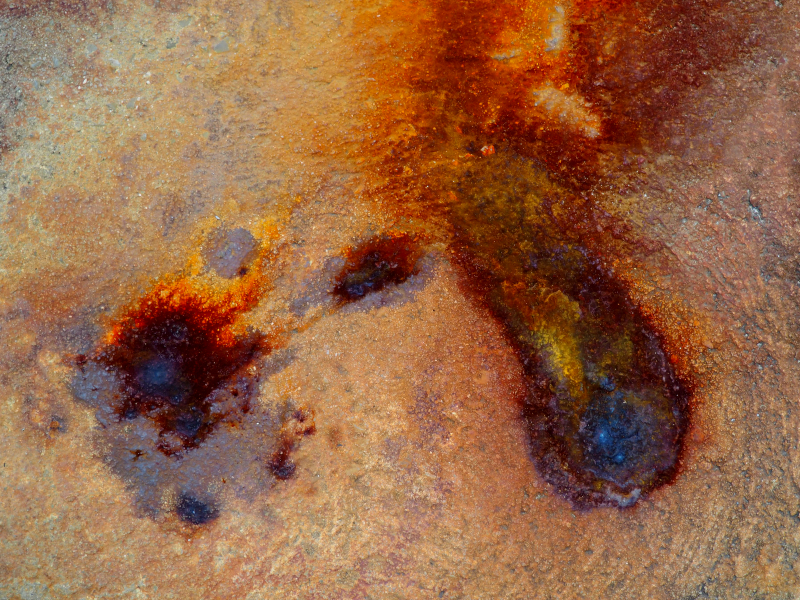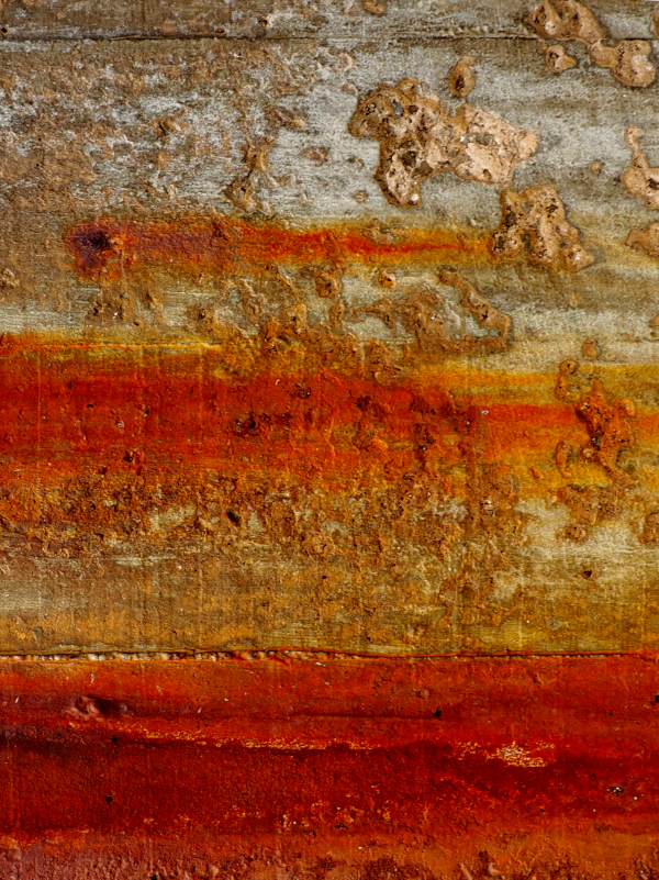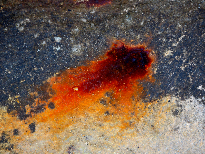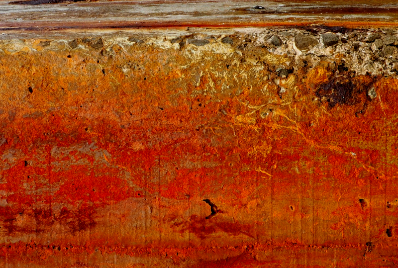 Analogía cromáticacon tonos cálidos. JB, 2024. Óxido sobre hormigón. 43 x 32 cms. Muelle don Luis de Castro Urdiales.