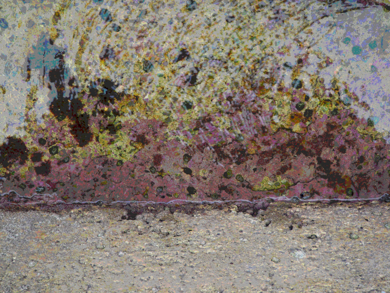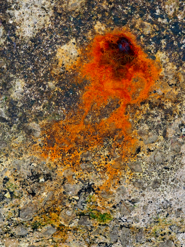 Refugio biológico. JB, 2024. Óxido sobre microgours en reaccion con el hormigón y efluorescencias. 40 x 30 cms. Muelle don Luis de Castro Urdiales.