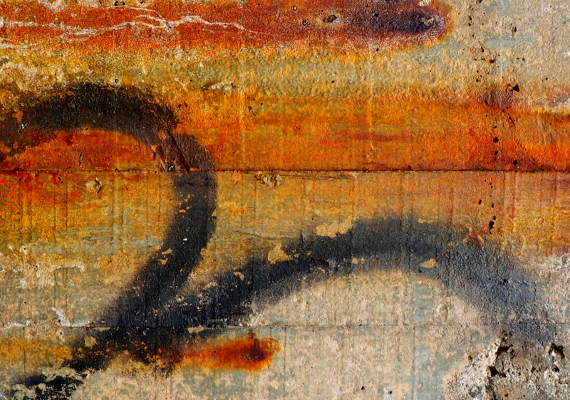 Incógnita. JB, 2024. Óxido y esmalte sobre hormigón. 38 x 50 cms. Muelle don Luis de Castro Urdiales.
