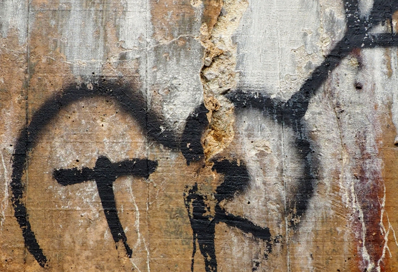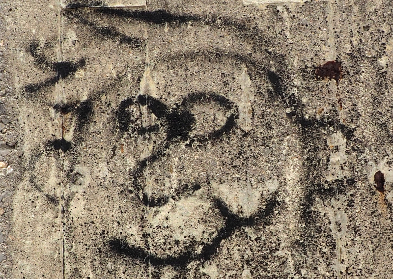 Genero indefinido. JB, 2024. Óxido y esmalte sobre hormigón. 40 x 53 cms. Muelle don Luis de Castro Urdiales.