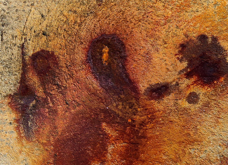 Manto cálido. JB, 2024. Óxido sobre hormigón. 33 x 44 cms. Muelle don Luis de Castro Urdiales.