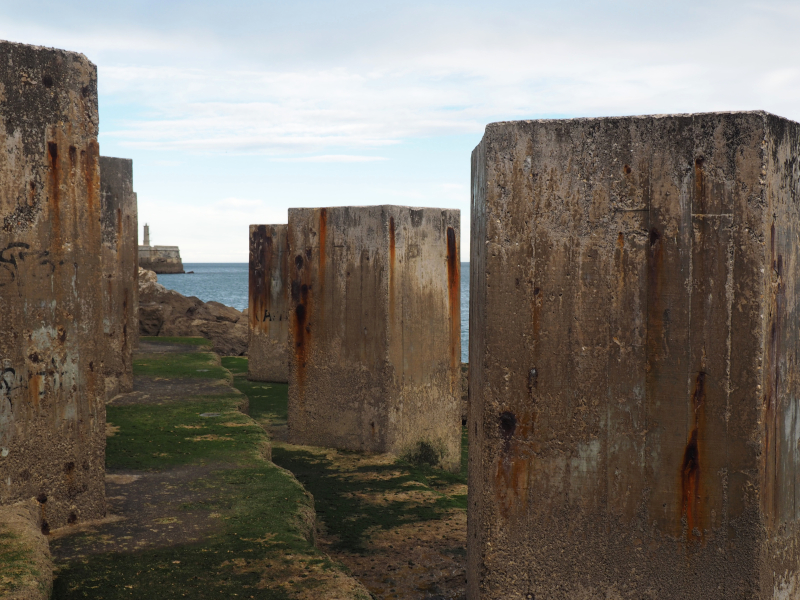 La nueve columnas de hormigón del solarium del muelle. JB, junio 2024. Muelle don Luis de Castro Urdiales.