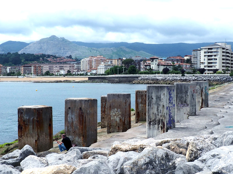 El paseante urbano encuentra arte en el espaldón de hormigón del dique norte de Castro Urdiales. Observa colores atenuados de diversas fuentes, gama estrecha de brillos, aplicados en diferentes tiempos sobre un lienzo de hormigón.